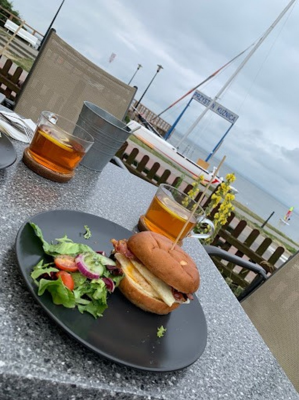 Flądra z frytkami i wiele innych pysznych potraw nadmorskich. A wszystko to z widokiem na zatokę.