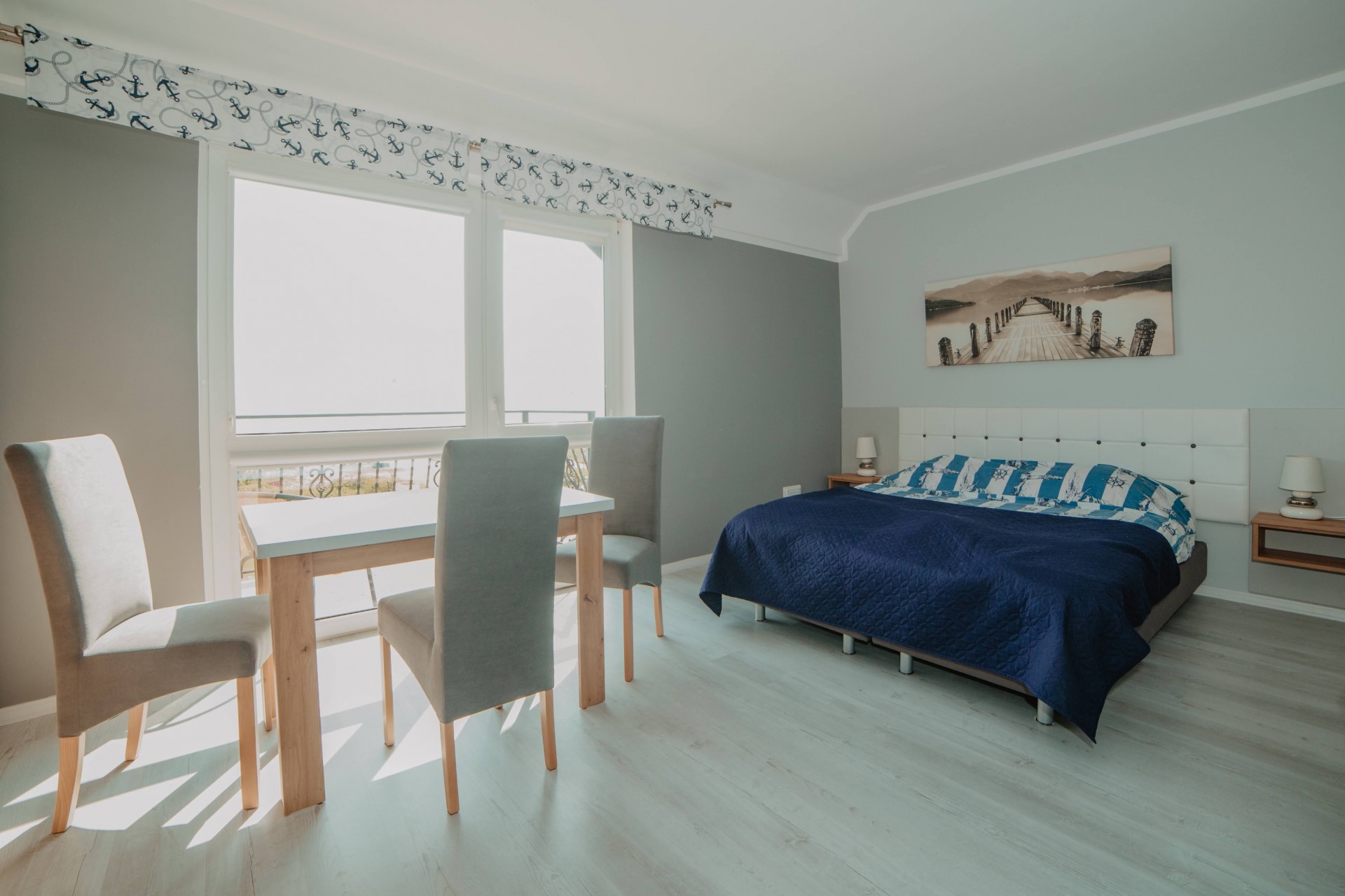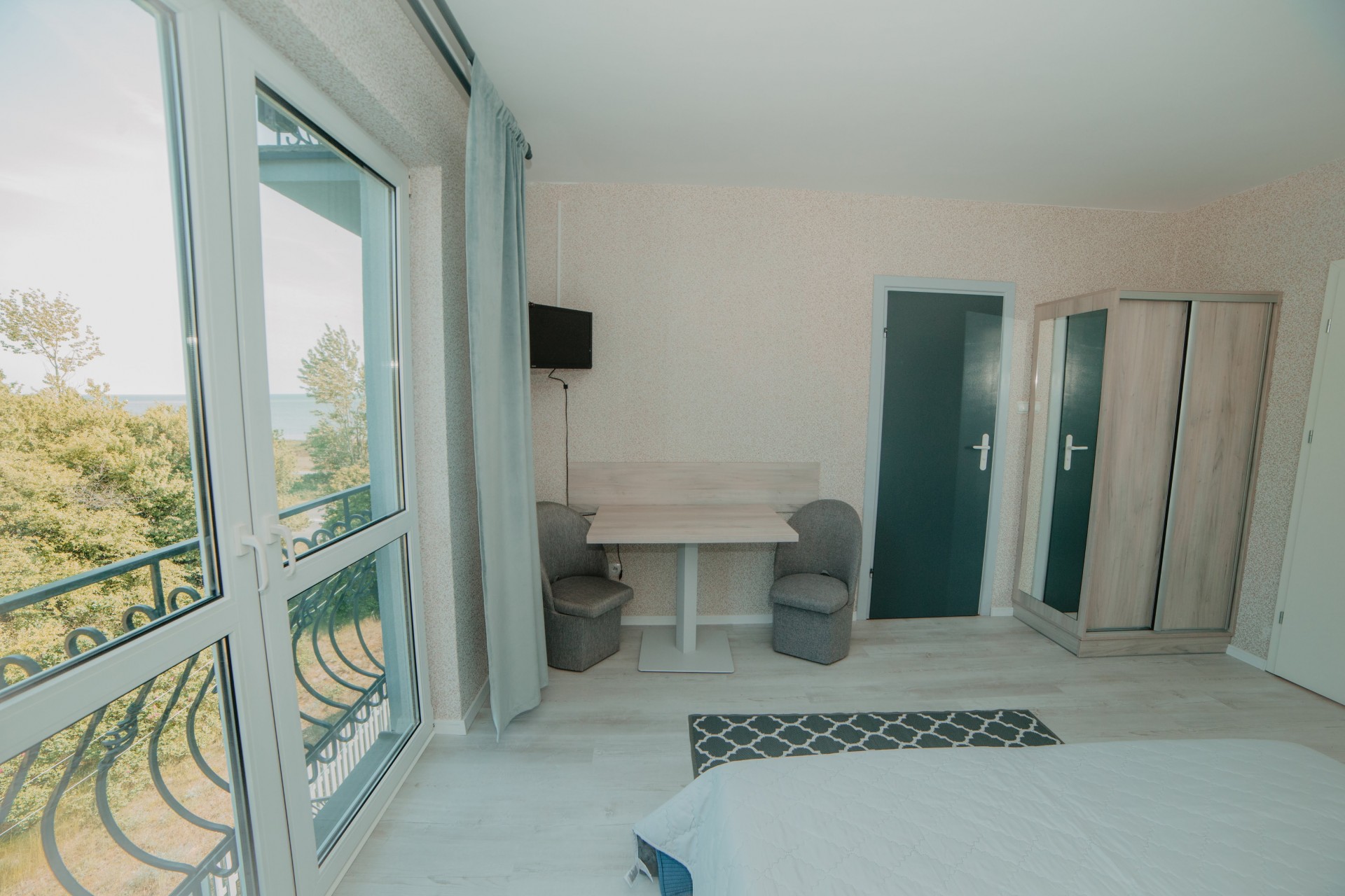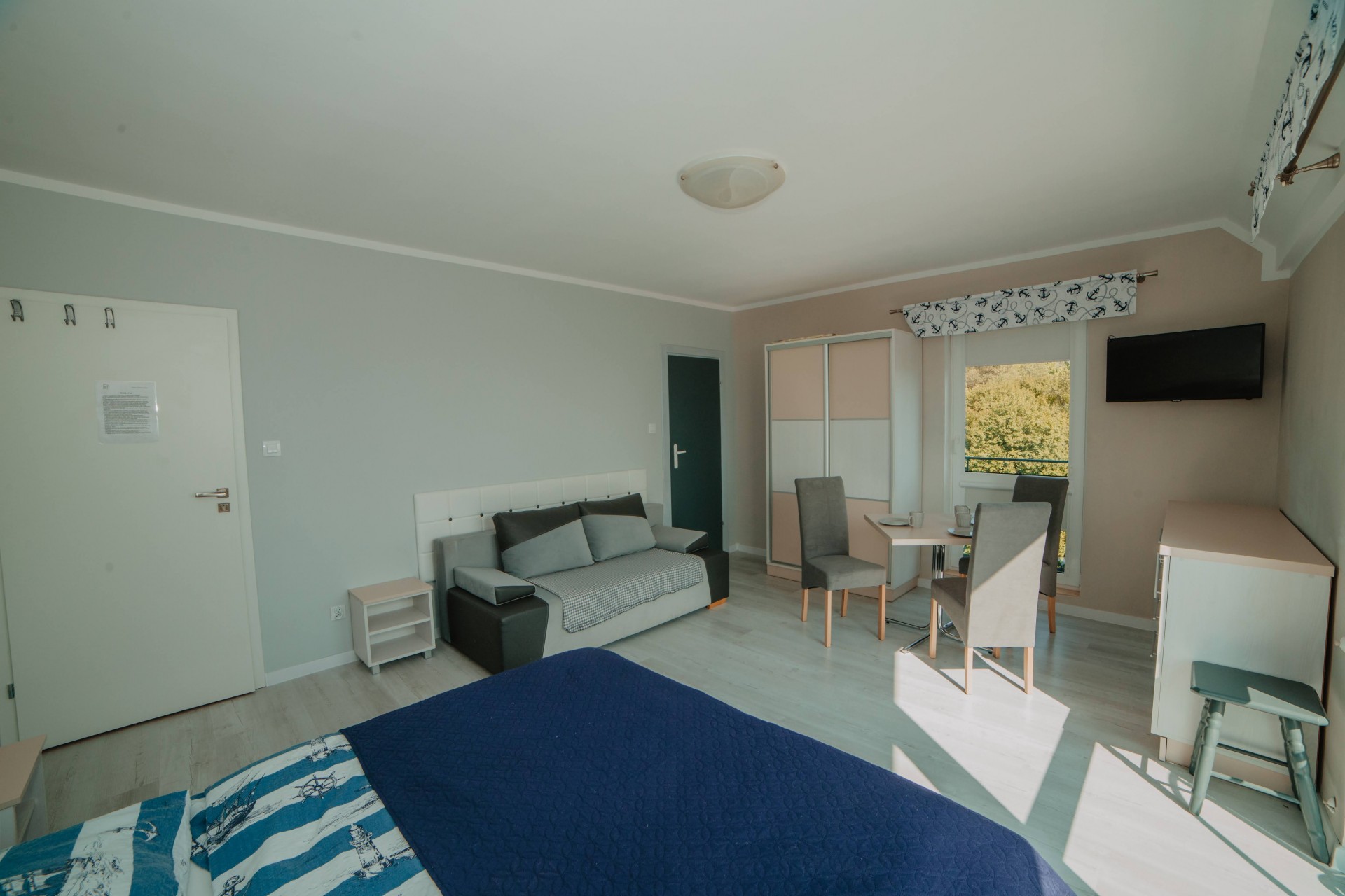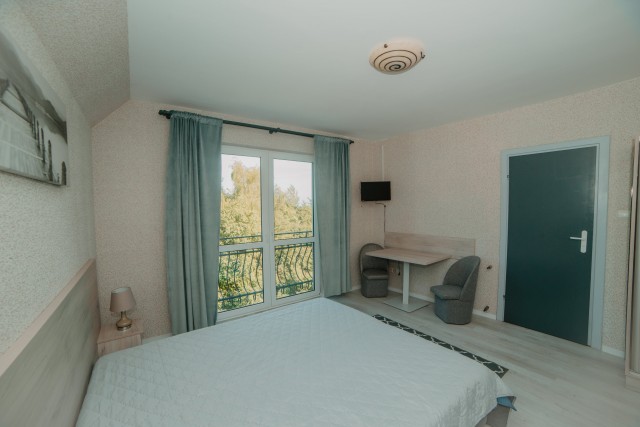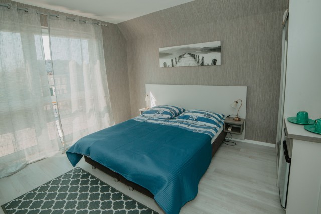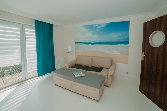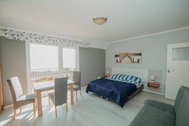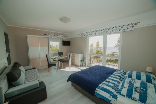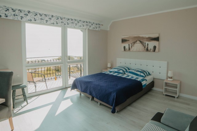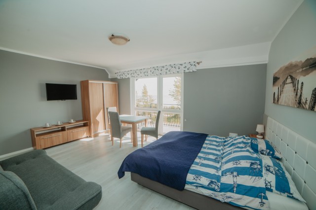 Przytulny pokój dla dwóch osób, idealny dla par. Wyposażony w prywatną łazienkę i balkon, z którego można cieszyć się świeżym morskim powietrzem.Pokój z łazienką i oknem balkonowym