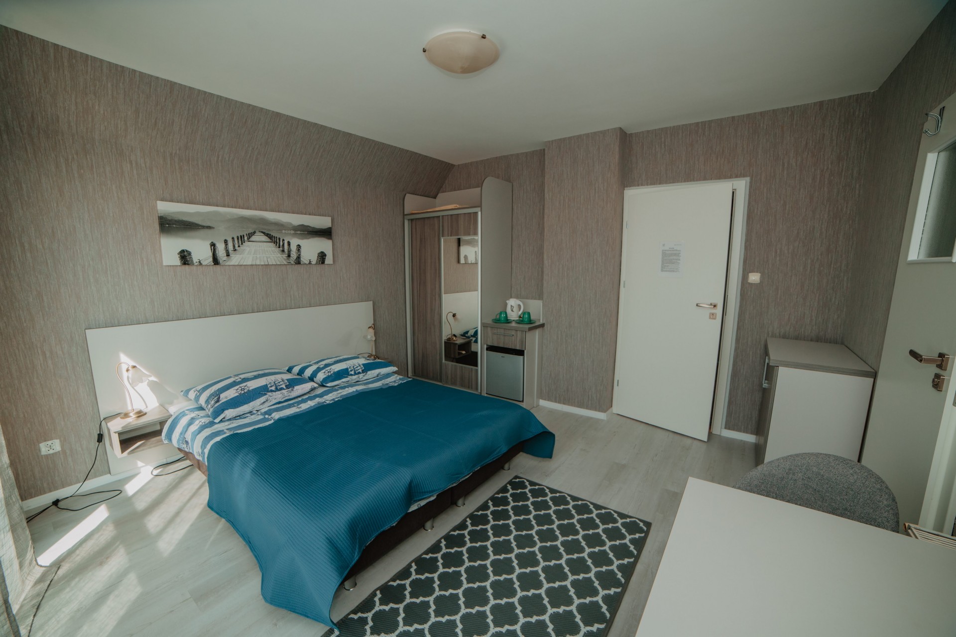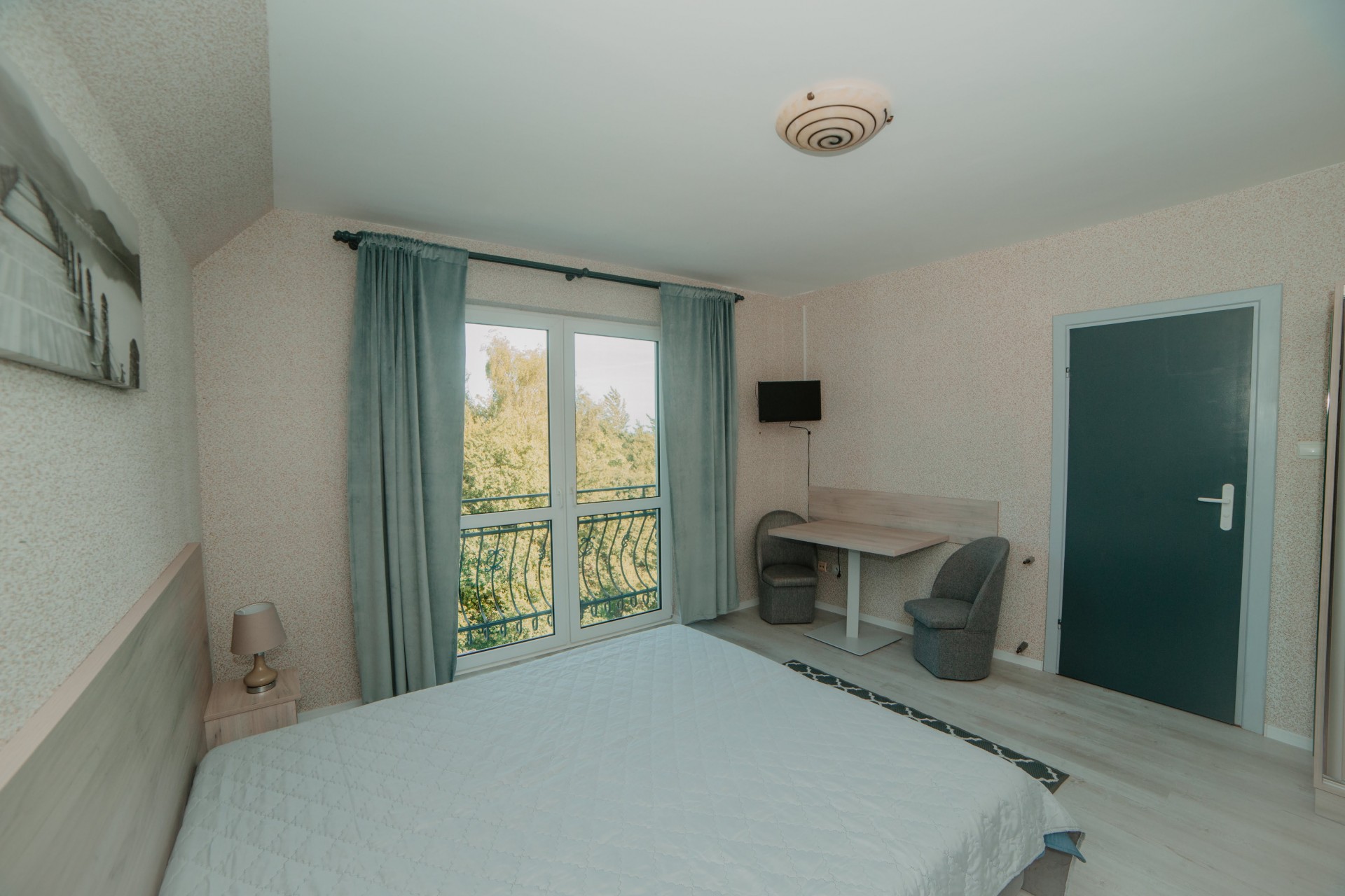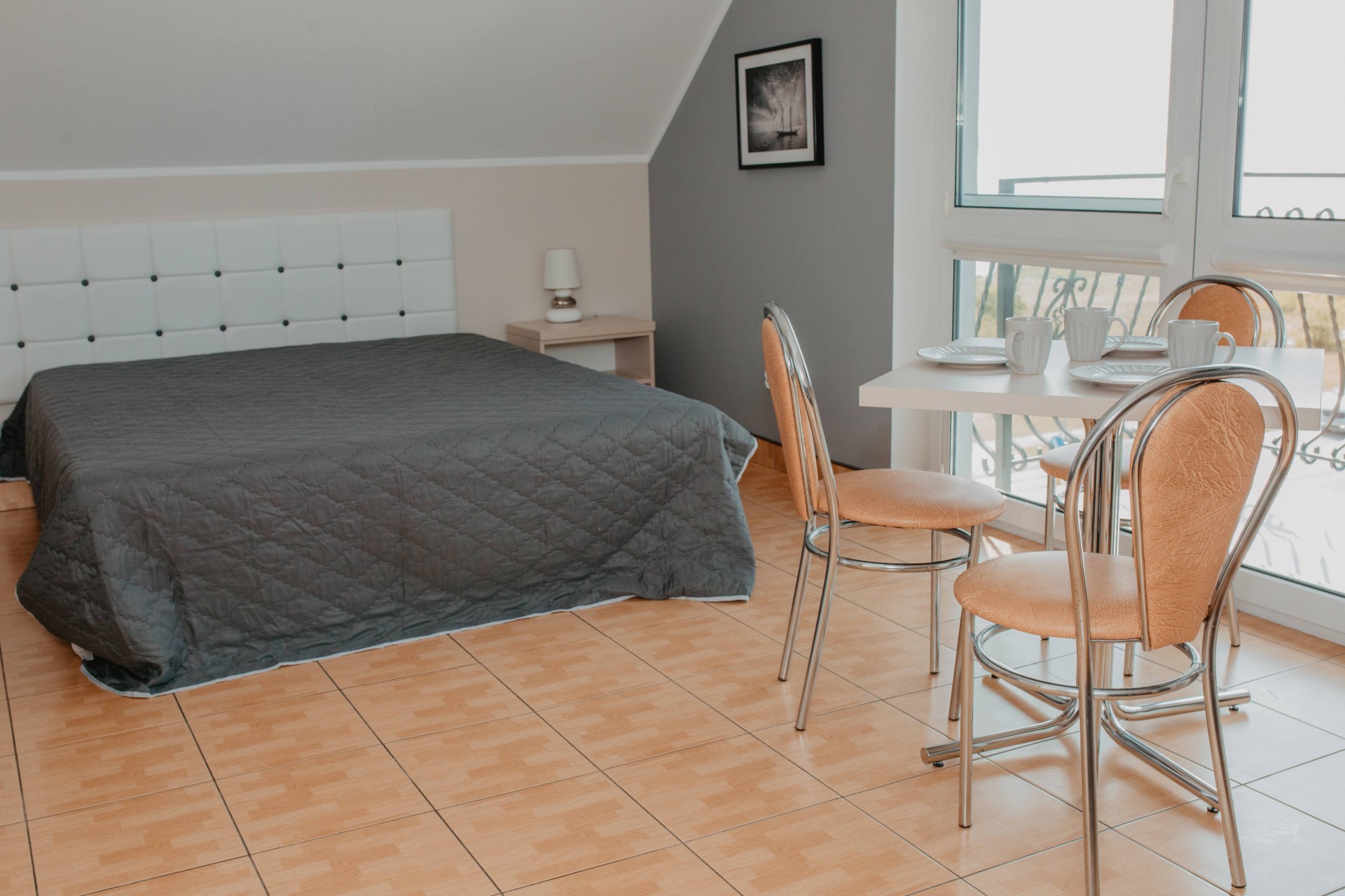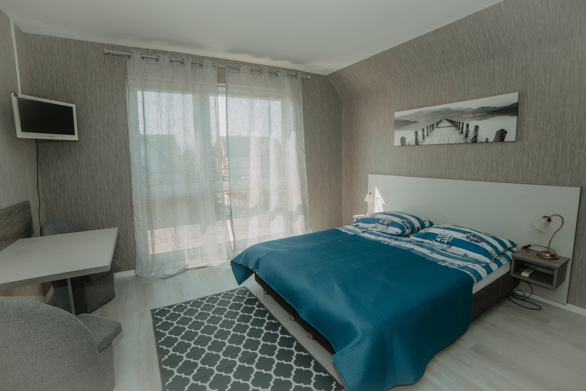 Przytulny pokój dla dwóch osób, idealny dla par. Wyposażony w prywatną łazienkę i balkon, z którego można cieszyć się świeżym morskim powietrzem.Pokój z łazienką i oknem balkonowym