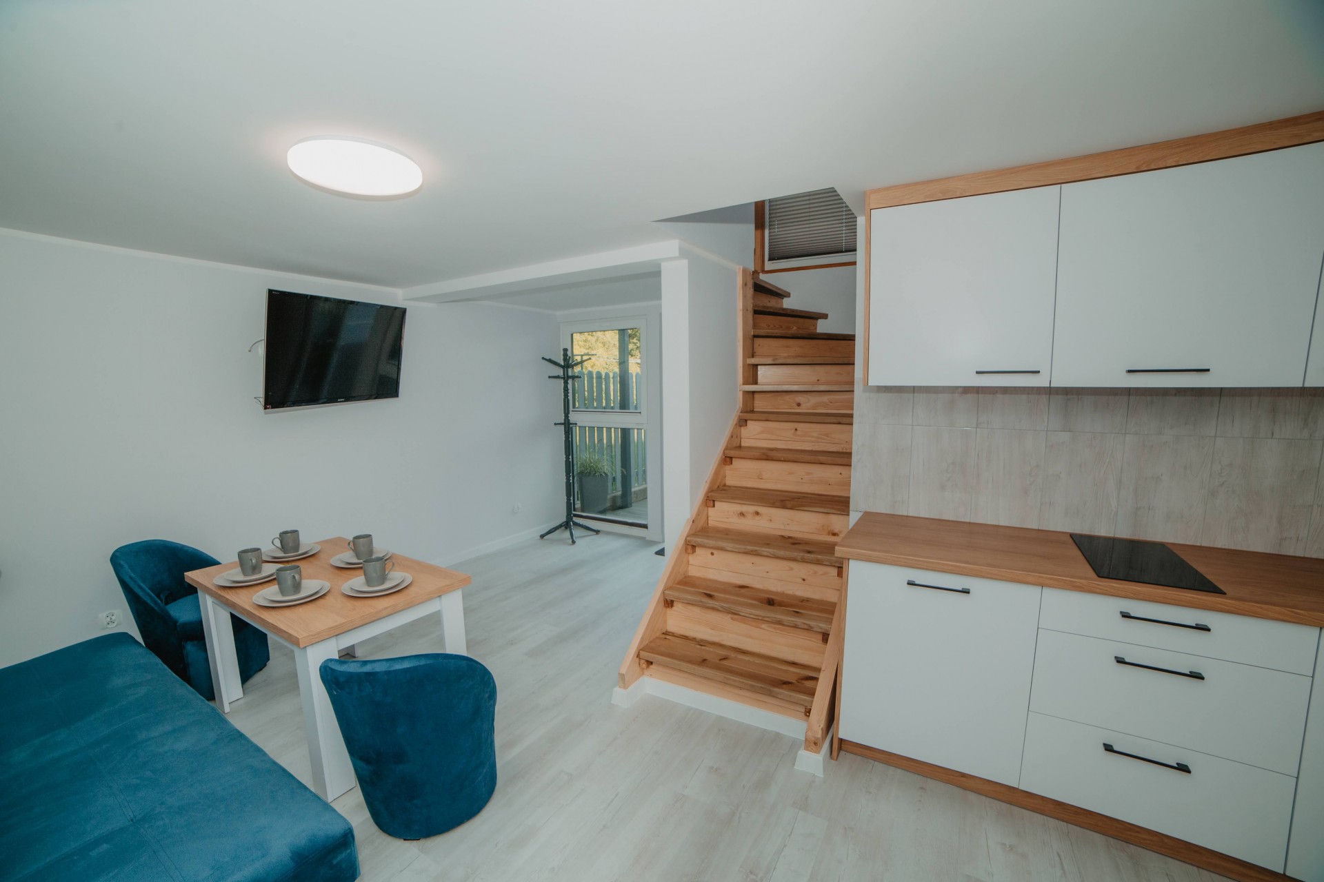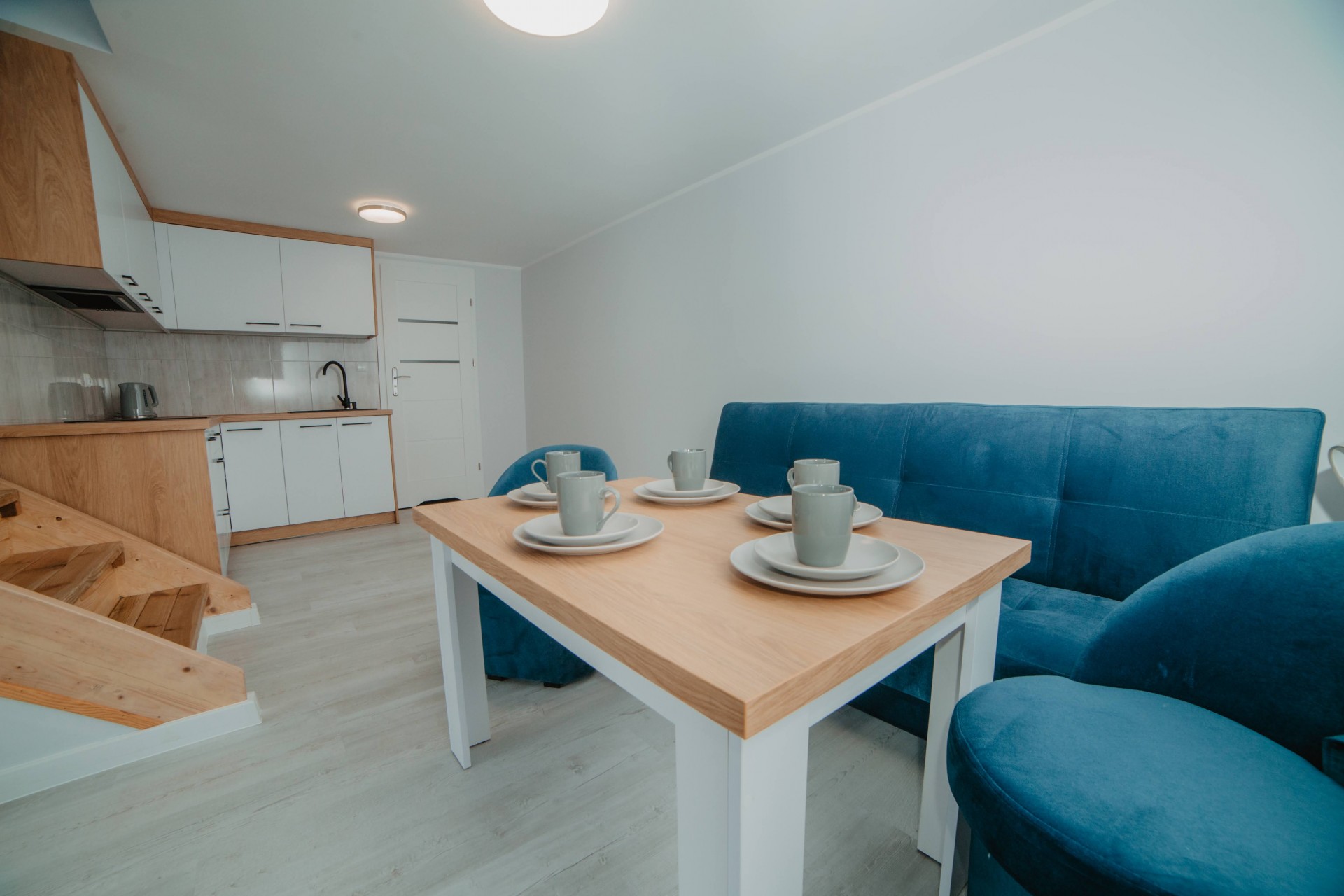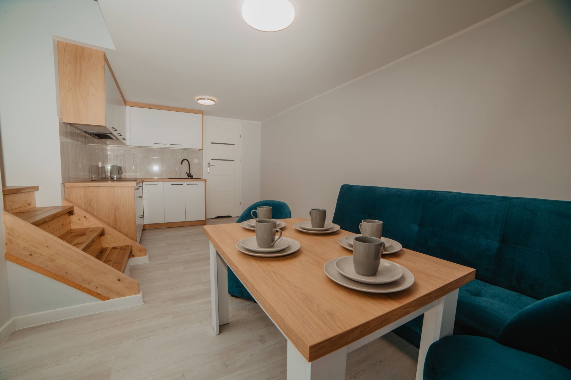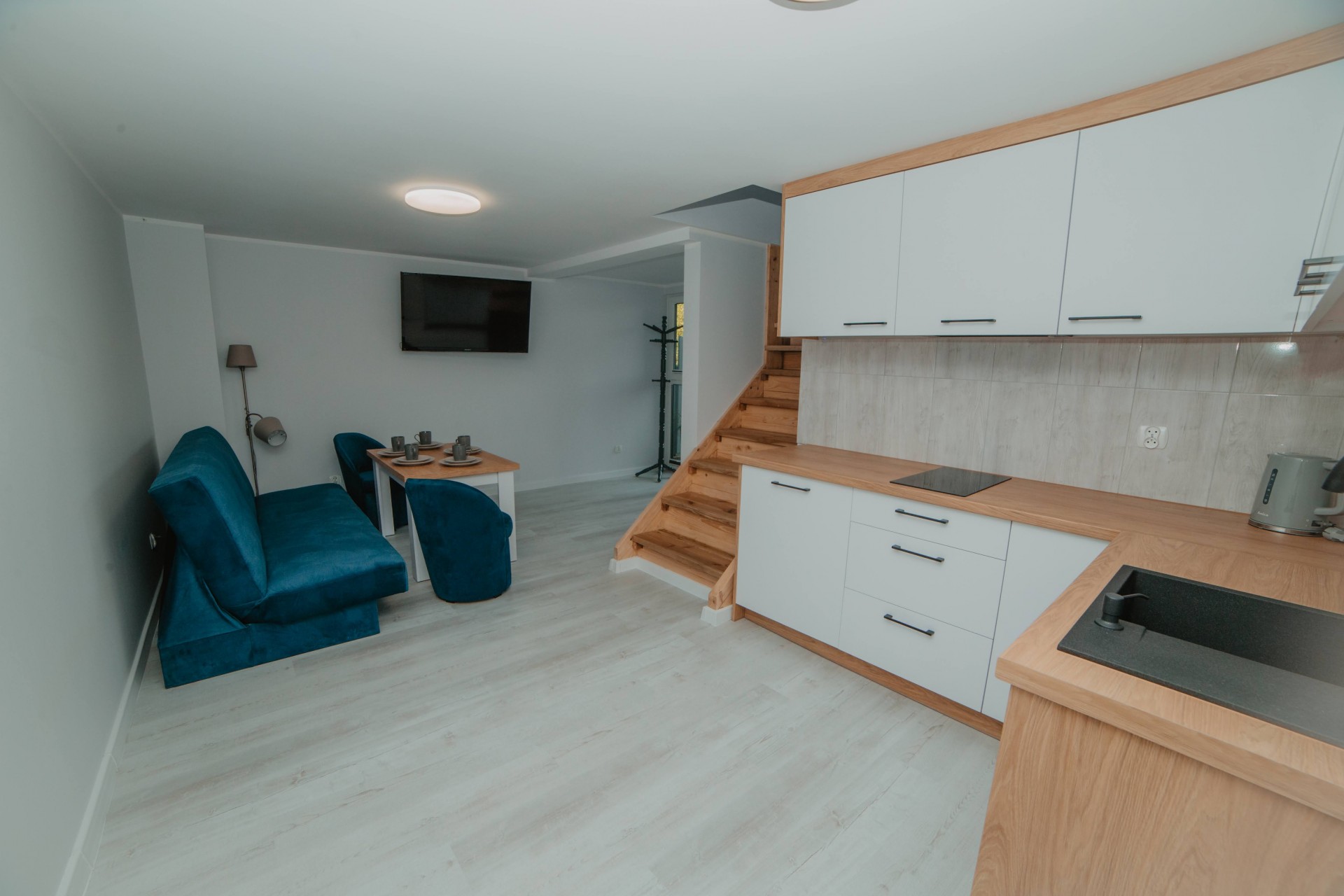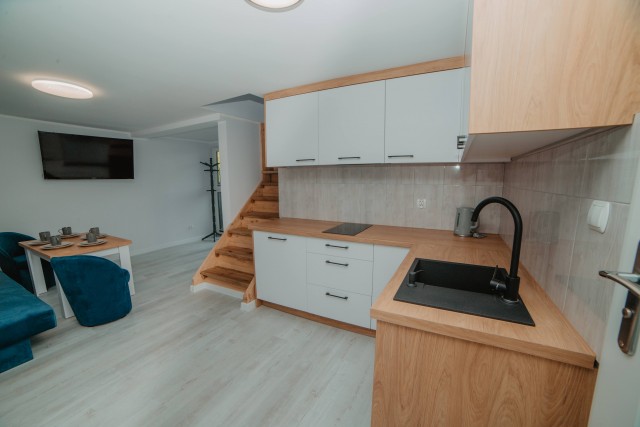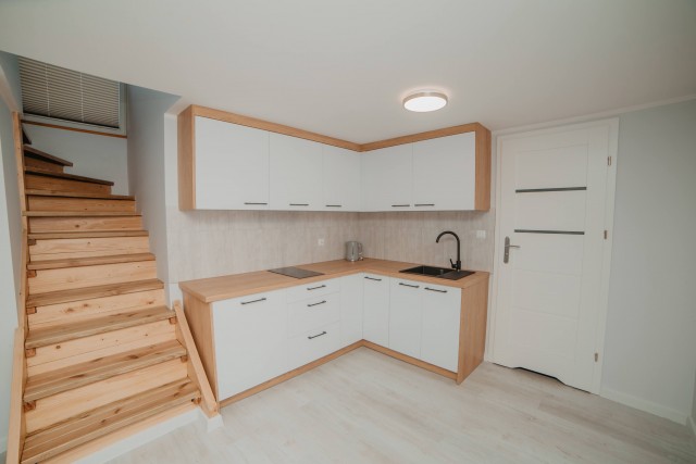 ogólnodostępny aneks kuchenny na dwóch piętrach