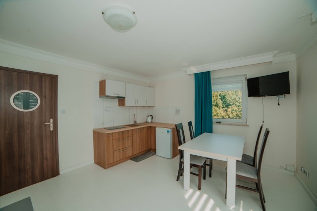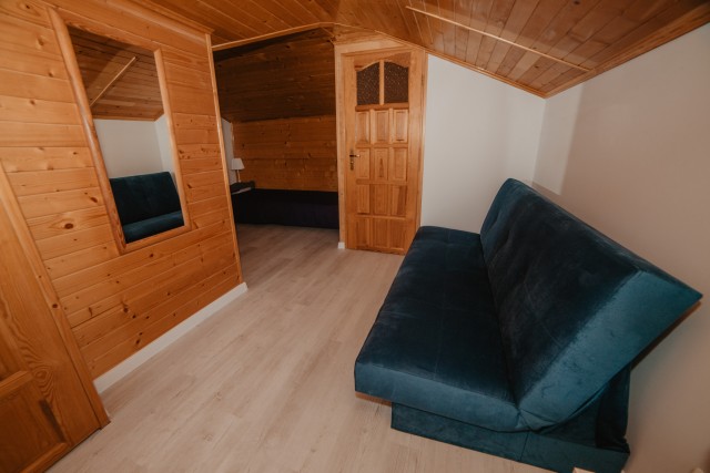 Wyposażenie: 1 łóżko podwójne oraz rozkładana wersalka. Świetna opcja dla rodzin i osób, które cenią sobie swobodę i niezależność podczas pobytu.
